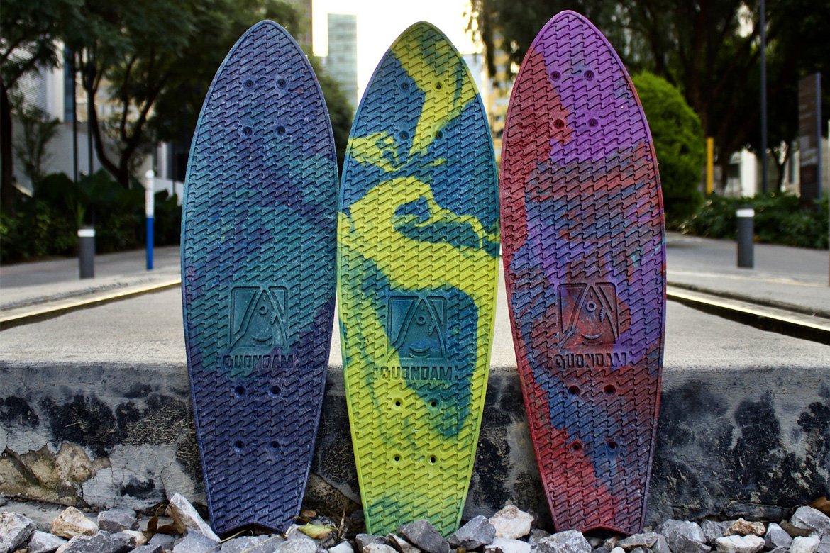 Cada una de las Quondam skateboards evita que más de 1.5 kg de plástico termine en el océano.